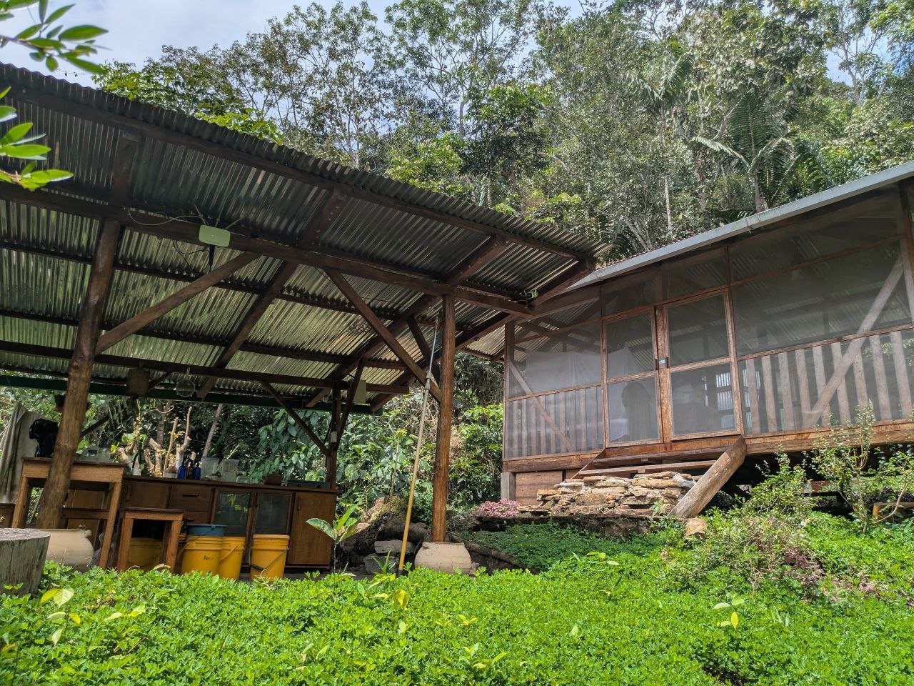 - A cabin and living space (3m x 6m) made with local tropical hardwood floor that is polished and fully screened in with 4 screen doors hand made bed and mosquito net. Full 360 view of the food forest, river and jungle emersion and fresh air, comfortable day/night weather!